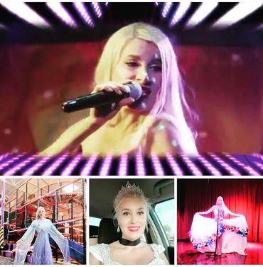 Princess Elsa singing and dancing with kids the songs from the movie “Frozen” at kids parties.